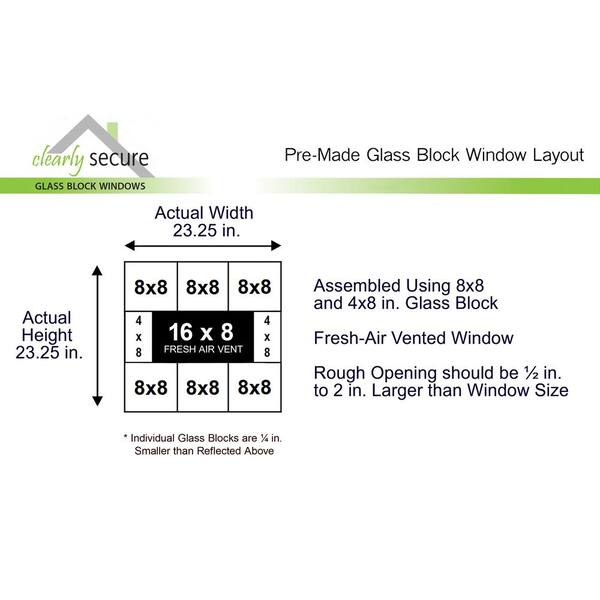 23.25 in. x 23.25 in. x 3.125 in. Frameless Vented Ice Pattern Glass Block Window