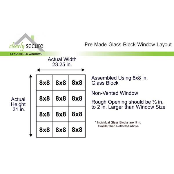 23.25 in. x 31 in. x 3.125 in. Frameless Diamond Pattern Non-Vented Glass Block Window