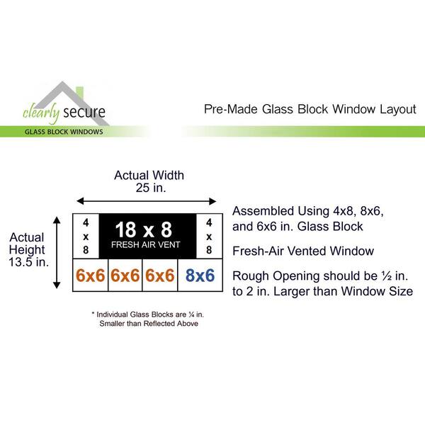 25 in. x 13.5 in. x 3.125 in. Frameless Ice Pattern Vented Glass Block Window
