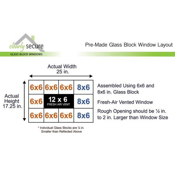 • Pre-assembled glass block replacement window with fresh air vent