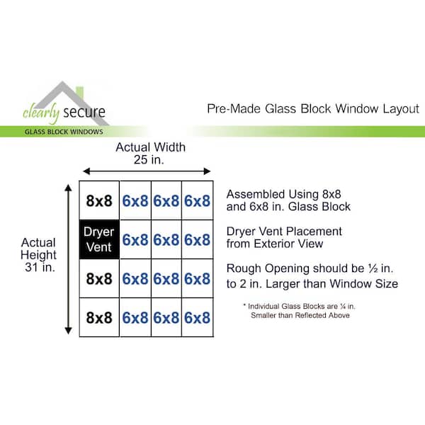 25 in. x 31 in. x 3.125 in. Frameless Ice Pattern Glass Block Window with Dryer Vent