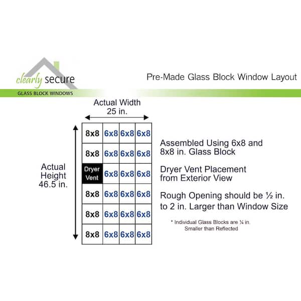 • Pre-assembled glass block replacement window with dryer vent