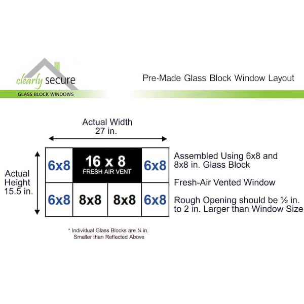 27 in. x 15.5 in. x 3.125 in. Frameless Ice Pattern Vented Glass Block Window