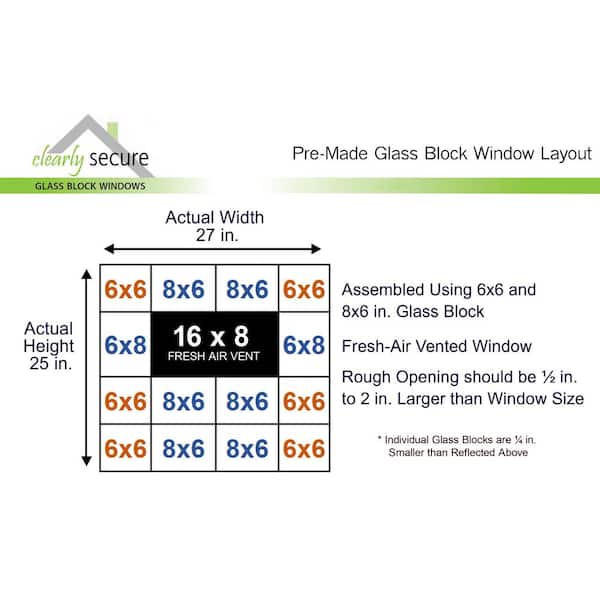 • Pre-assembled glass block replacement window with fresh air vent