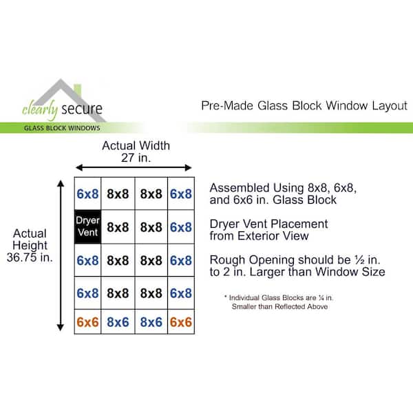 27 in. x 36.75 in. x 3.125 in. Frameless Ice Pattern Glass Block Window with Dryer Vent