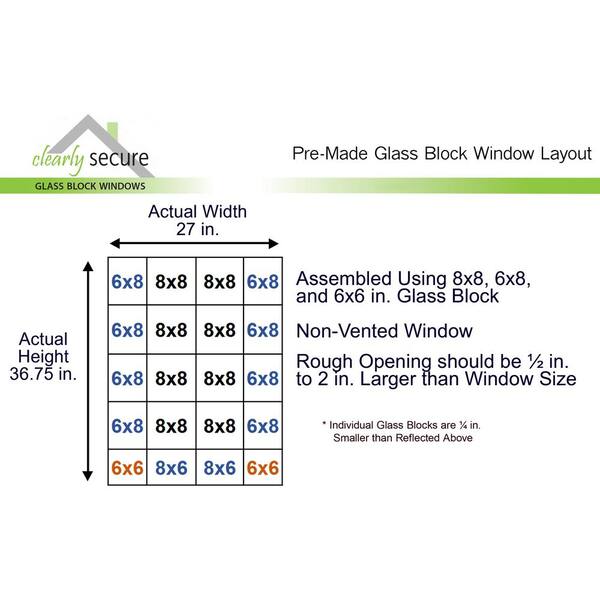 27 in. x 36.75 in. x 3.125 in. Frameless Ice Pattern Non-Vented Glass Block Window