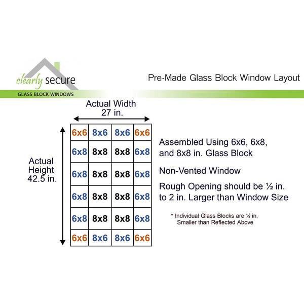 27 in. x 42.5 in. x 3.125 in. Frameless Diamond Pattern Non-Vented Glass Block Window