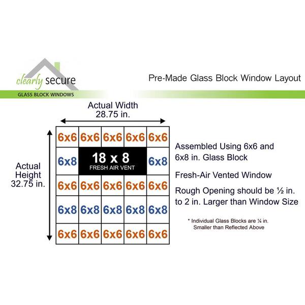 28.75 in. x 32.75 in. x 3.125 in. Frameless Diamond Pattern Vented Glass Block Window