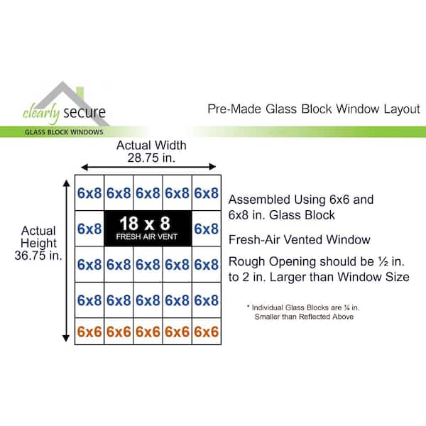 28.75 in. x 36.75 in. x 3.125 in. Frameless Ice Pattern Vented Glass Block Window