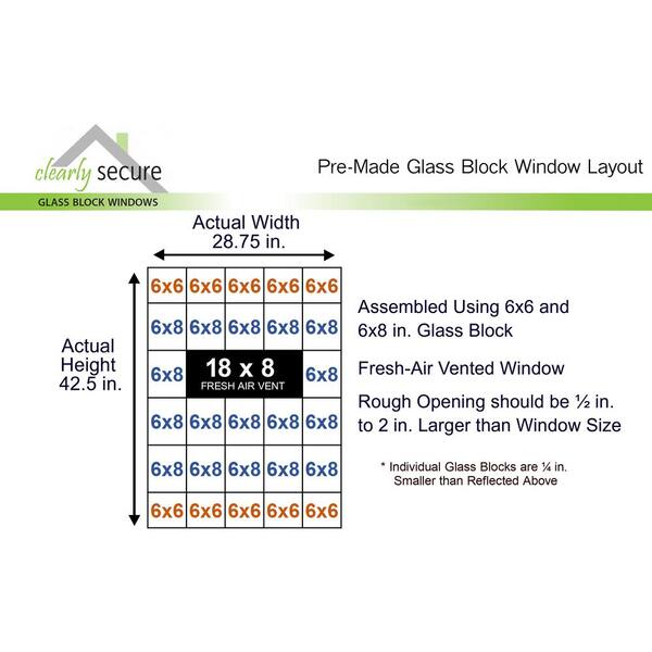 28.75 in. x 42.5 in. x 3.125 in. Frameless Ice Pattern Vented Glass Block Window
