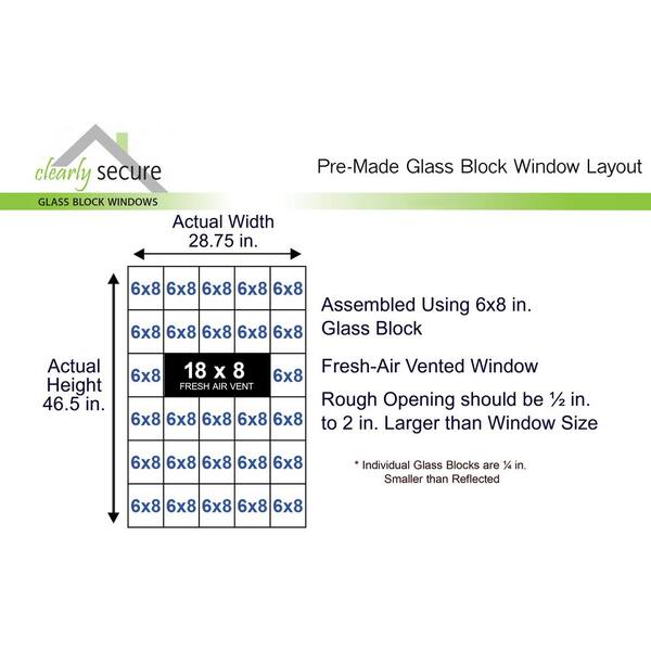 • Pre-assembled glass block replacement window with fresh air vent
