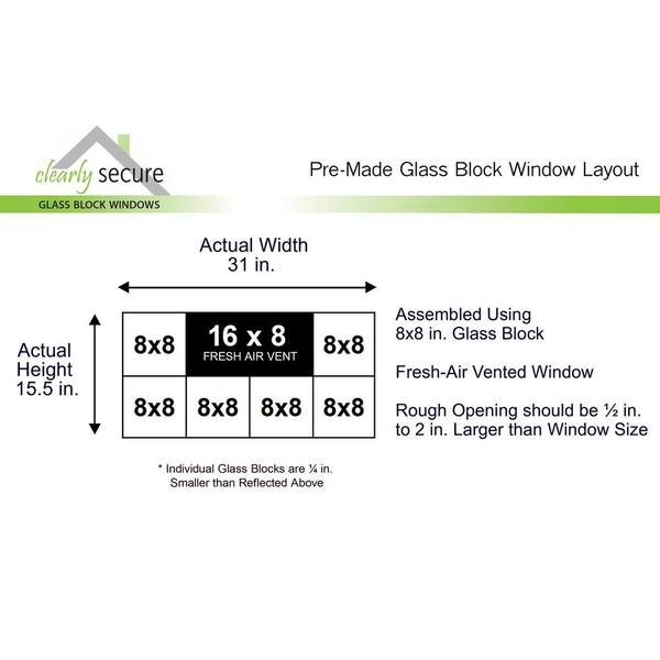 31 in. x 15.5 in. x 3.125 in. Frameless Ice Pattern Vented Glass Block Window