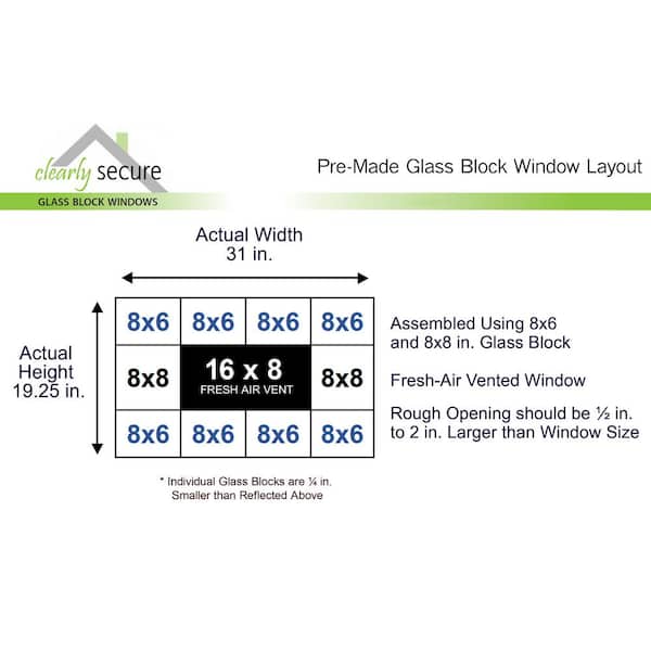 31 in. x 19.25 in. x 3.125 in. Frameless Ice Pattern Vented Glass Block Window