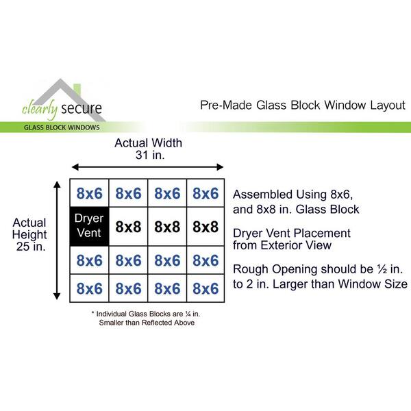 31 in. x 25 in. x 3.125 in. Frameless Diamond Pattern Glass Block Window with Dryer Vent