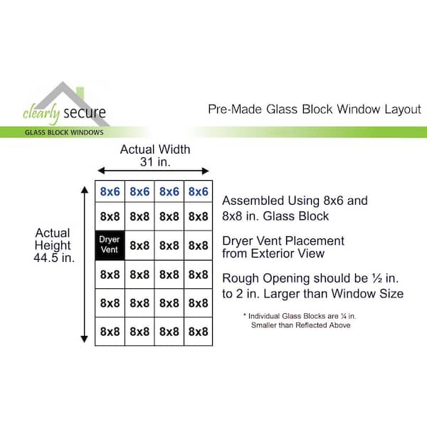 31 in. x 44.5 in. x 3.125 in. Frameless Diamond Pattern Glass Block Window with Dryer Vent