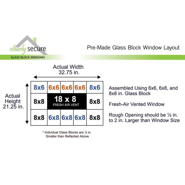 32.75 in. x 21.25 in. x 3.125 in. Frameless Ice Pattern Vented Glass Block Window