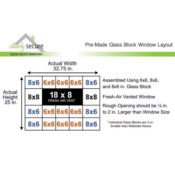 32.75 in. x 25 in. x 3.125 in. Frameless Ice Pattern Vented Glass Block Window