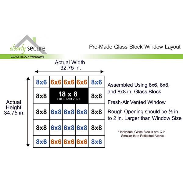 32.75 in. x 34.75 in. x 3.125 in. Frameless Ice Pattern Vented Glass Block Window