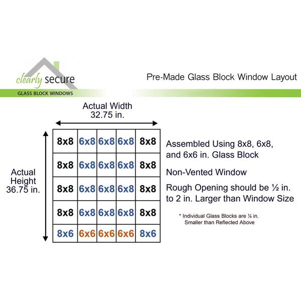 32.75 in. x 36.75 in. x 3.125 in. Frameless Diamond Pattern Non-Vented Glass Block Window