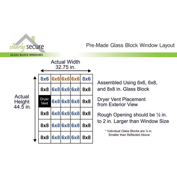 32.75 in. x 44.5 in. x 3.125 in. Frameless Wave Pattern Glass Block Window with Dryer Vent