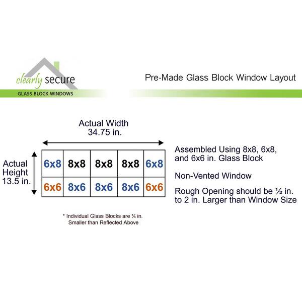 34.75 in. x 13.5 in. x 3.125 in. Frameless Non-Vented Clear Glass Block Window