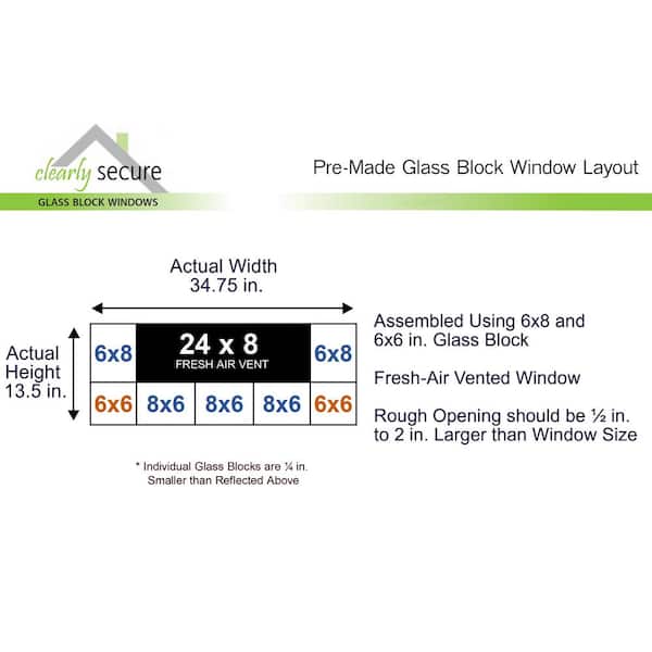 34.75 in. x 13.5 in. x 3.125 in. Frameless Vented Clear Glass Block Window