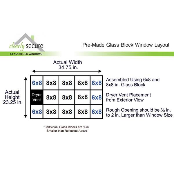 34.75 in. x 23.25 in. x 3.125 in. Frameless Clear Glass Block Window with Dryer Vent
