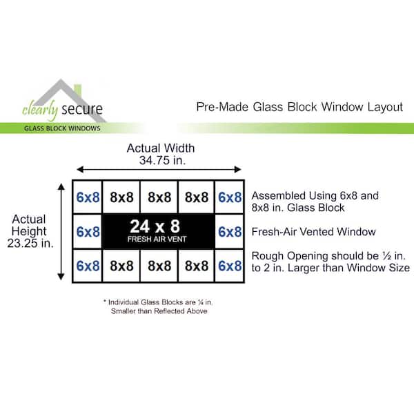 34.75 in. x 23.25 in. x 3.125 in. Frameless Vented Ice Pattern Glass Block Window