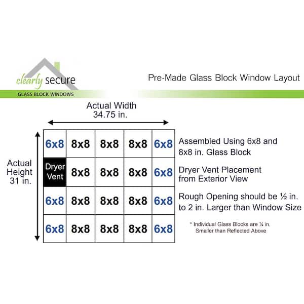 34.75 in. x 31 in. x 3.125 in. Frameless Ice Pattern Glass Block Window with Dryer Vent