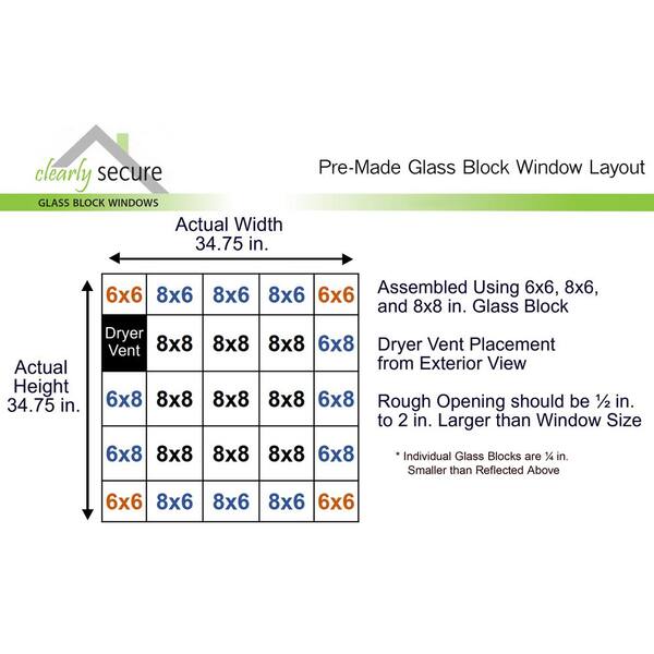 34.75 in. x 34.75 in. x 3.125 in. Frameless Diamond Pattern Glass Block Window with Dryer Vent