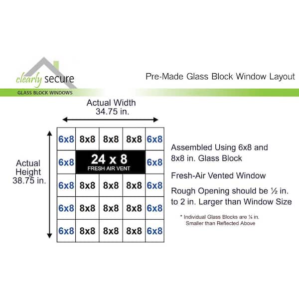 34.75 in. x 38.75 in. x 3.125 in. Frameless Ice Pattern Vented Glass Block Window