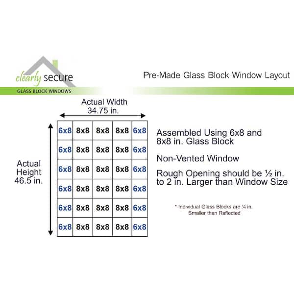 34.75 in. x 46.5 in. x 3.125 in. Frameless Ice Pattern Non-Vented Glass Block Window