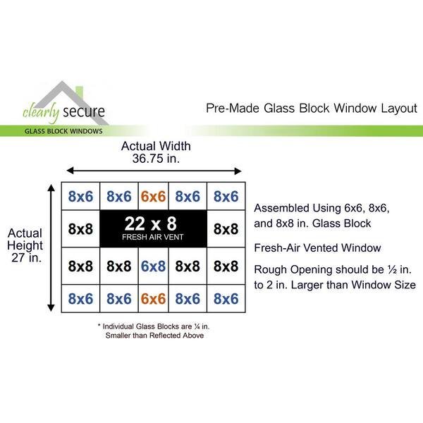 36.75 in. x 27 in. x 3.125 in. Frameless Wave Pattern Vented Glass Block Window