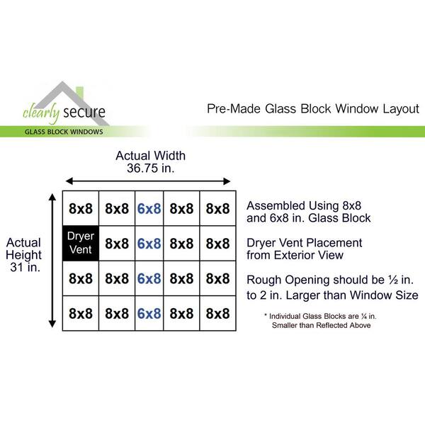 36.75 in. x 31 in. x 3.125 in. Frameless Diamond Pattern Glass Block Window with Dryer Vent