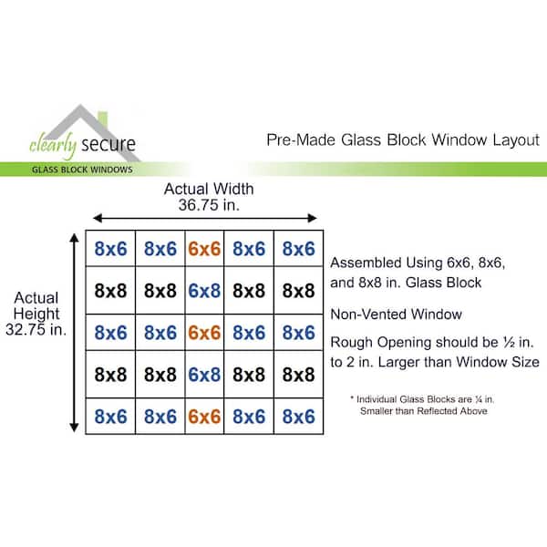 36.75 in. x 32.75 in. x 3.125 in. Frameless Diamond Pattern Non-Vented Glass Block Window
