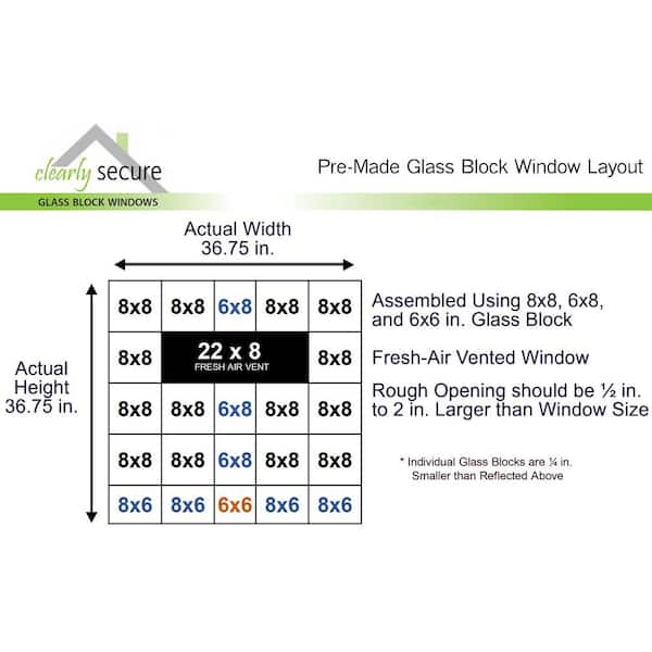 36.75 in. x 36.75 in. x 3.125 in. Frameless Ice Pattern Vented Glass Block Window