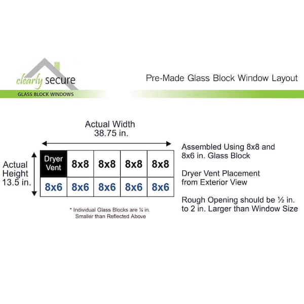 • Pre-assembled glass block replacement window with dryer vent