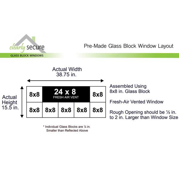 38.75 in. x 15.5 in. x 3.125 in. Frameless Ice Pattern Vented Glass Block Window