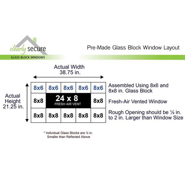 38.75 in. x 21.25 in. x 3.125 in. Frameless Ice Pattern Vented Glass Block Window