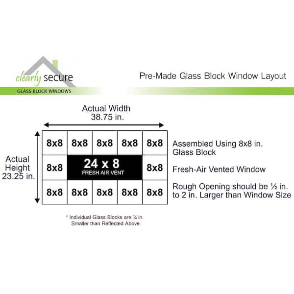 38.75 in. x 23.25 in. x 3.125 in. Frameless Ice Pattern Vented Glass Block Window