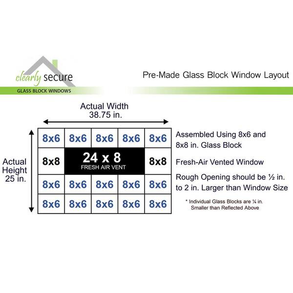 38.75 in. x 25 in. x 3.125 in. Frameless Ice Pattern Vented Glass Block Window
