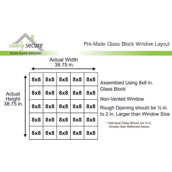 38.75 in. x 38.75 in. x 3.125 in. Frameless Ice Pattern Non-Vented Glass Block Window