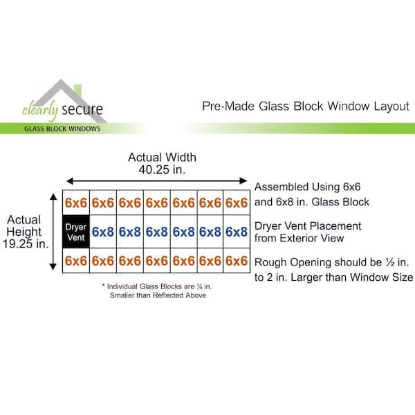 • Pre-assembled glass block replacement window with dryer vent