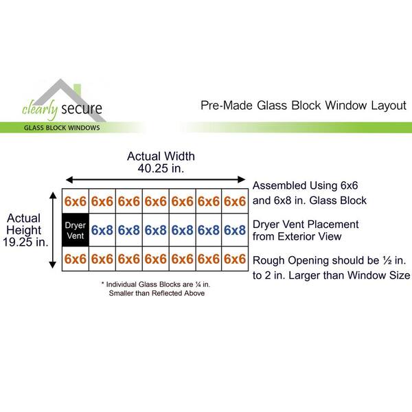 40.25 in. x 19.25 in. x 3.125 in. Frameless Wave Pattern Glass Block Window with Dryer Vent