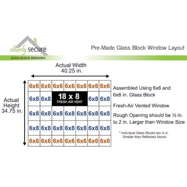 40.25 in. x 34.75 in. x 3.125 in. Frameless Ice Pattern Vented Glass Block Window