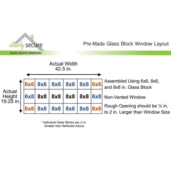 42.5 in. x 19.25 in. x 3.125 in. Frameless Ice Pattern Non-Vented Glass Block Window