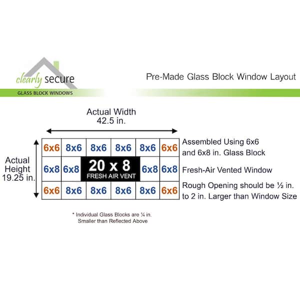 42.5 in. x 19.25 in. x 3.125 in. Frameless Wave Pattern Vented Glass Block Window