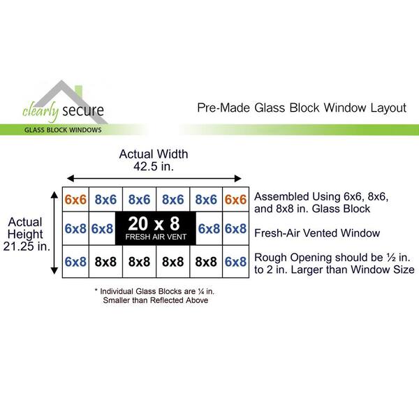 42.5 in. x 21.25 in. x 3.125 in. Frameless Diamond Pattern Vented Glass Block Window
