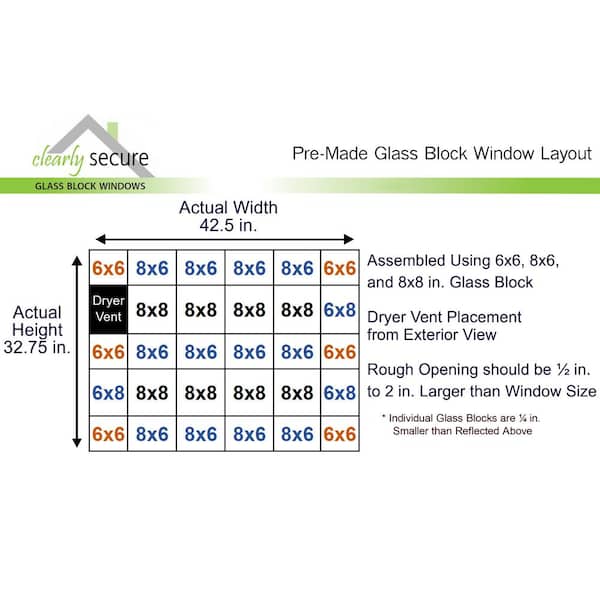• Pre-assembled glass block replacement window with dryer vent