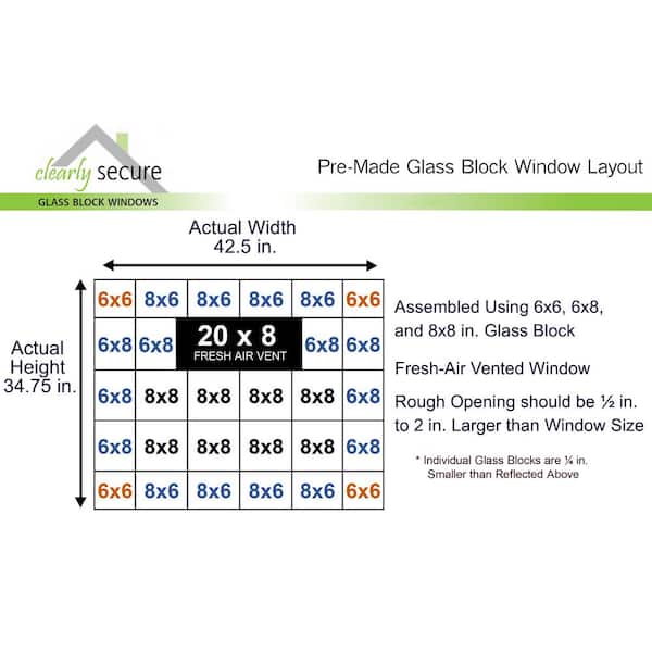 42.5 in. x 34.75 in. x 3.125 in. Frameless Ice Pattern Vented Glass Block Window
